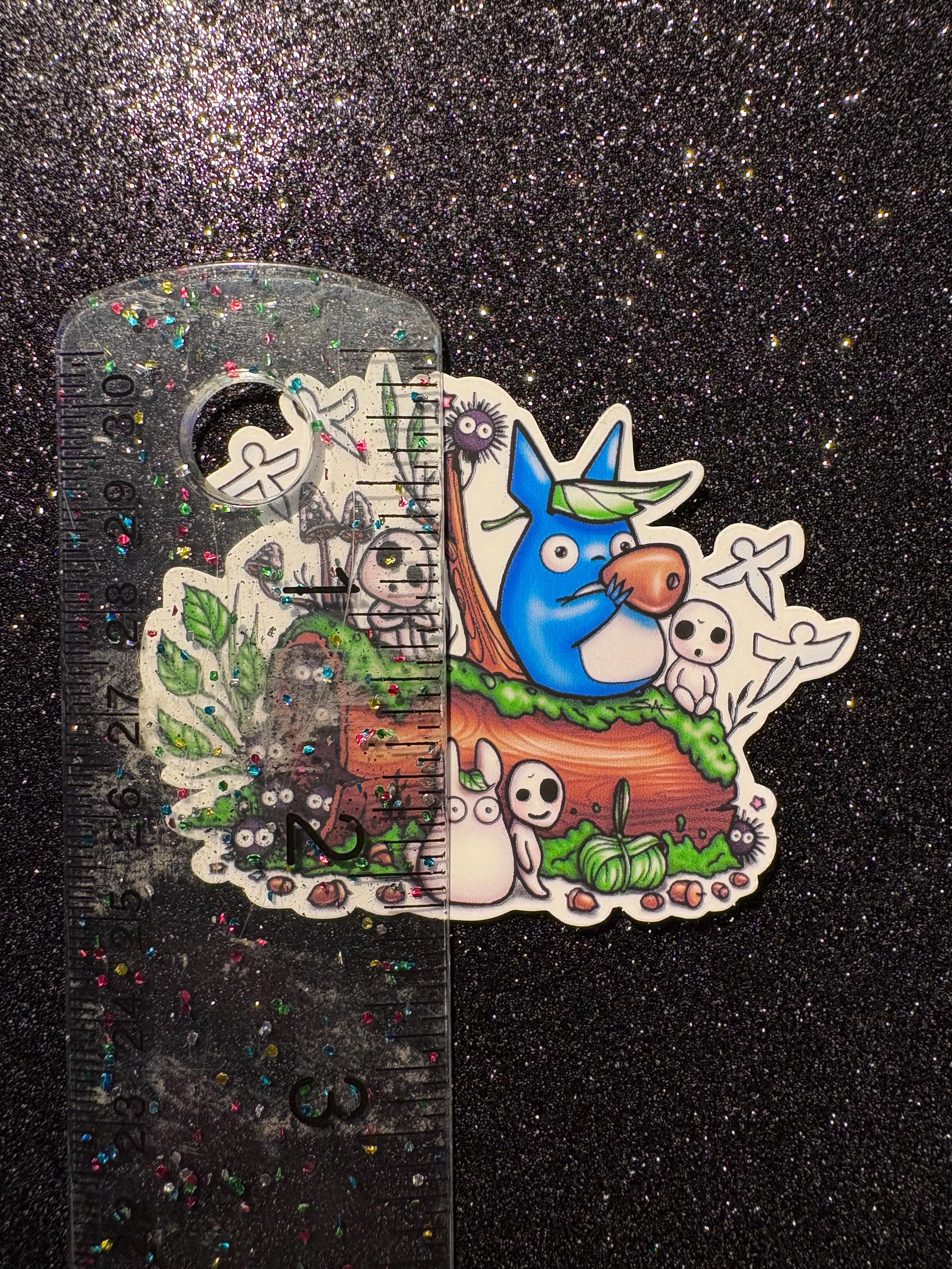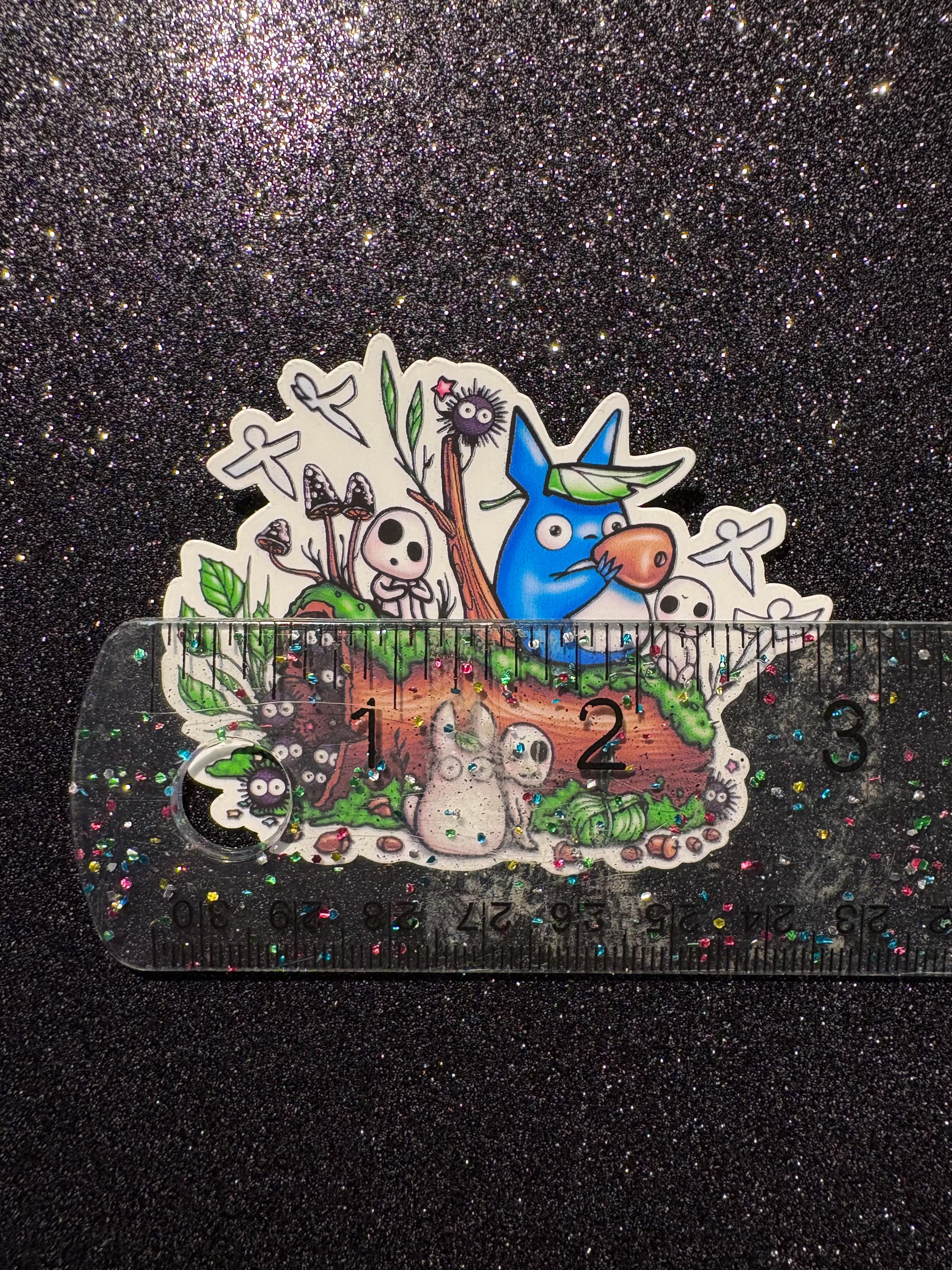 Ghibli Spirits Sticker! There are 2 small Totoro’s, soot sprites, Paper birds, and Forest Spirits chillin together. 🌱💙🤍