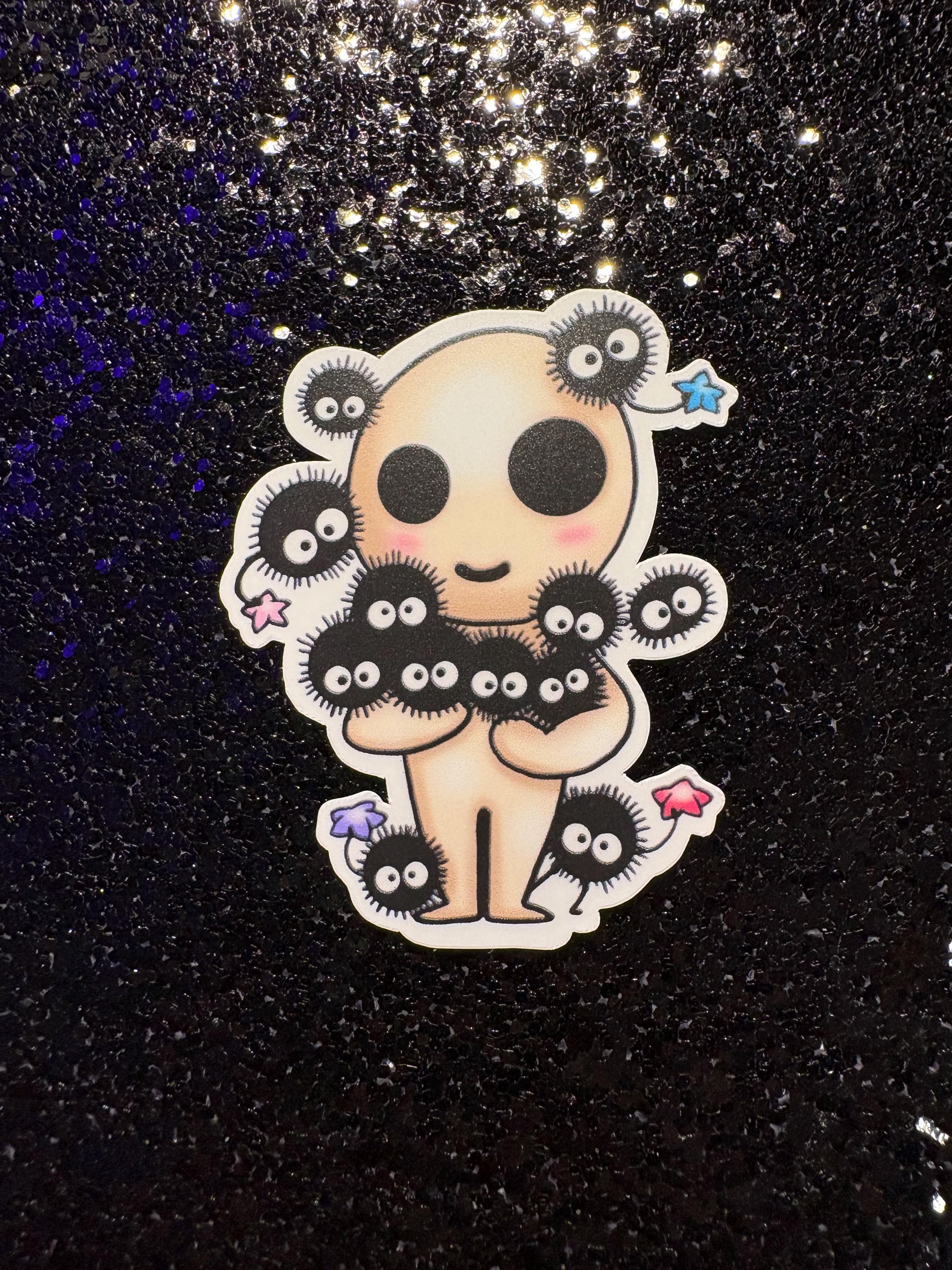 Cute Forest Spirit cuddling Soot sprites! 🌱💙🤍