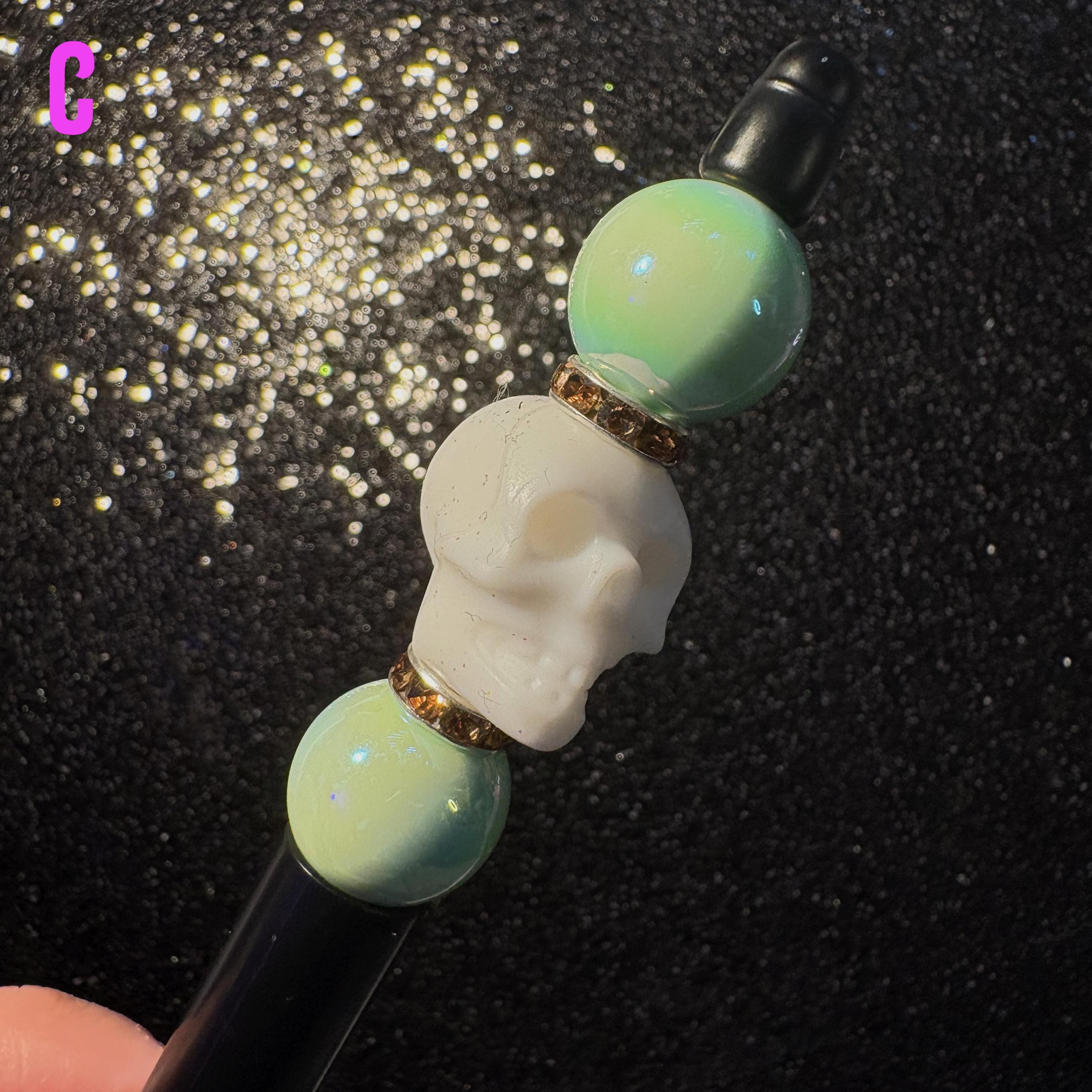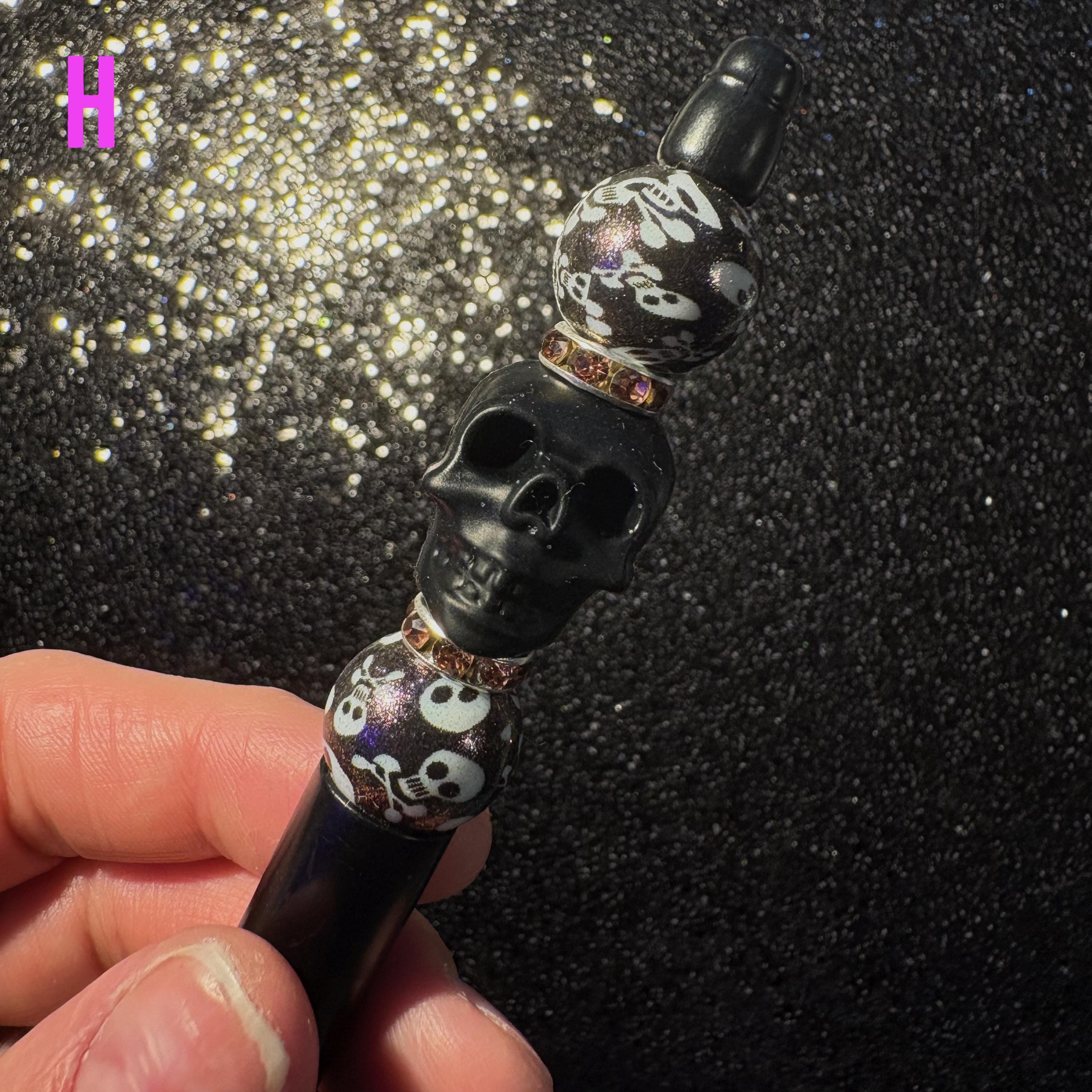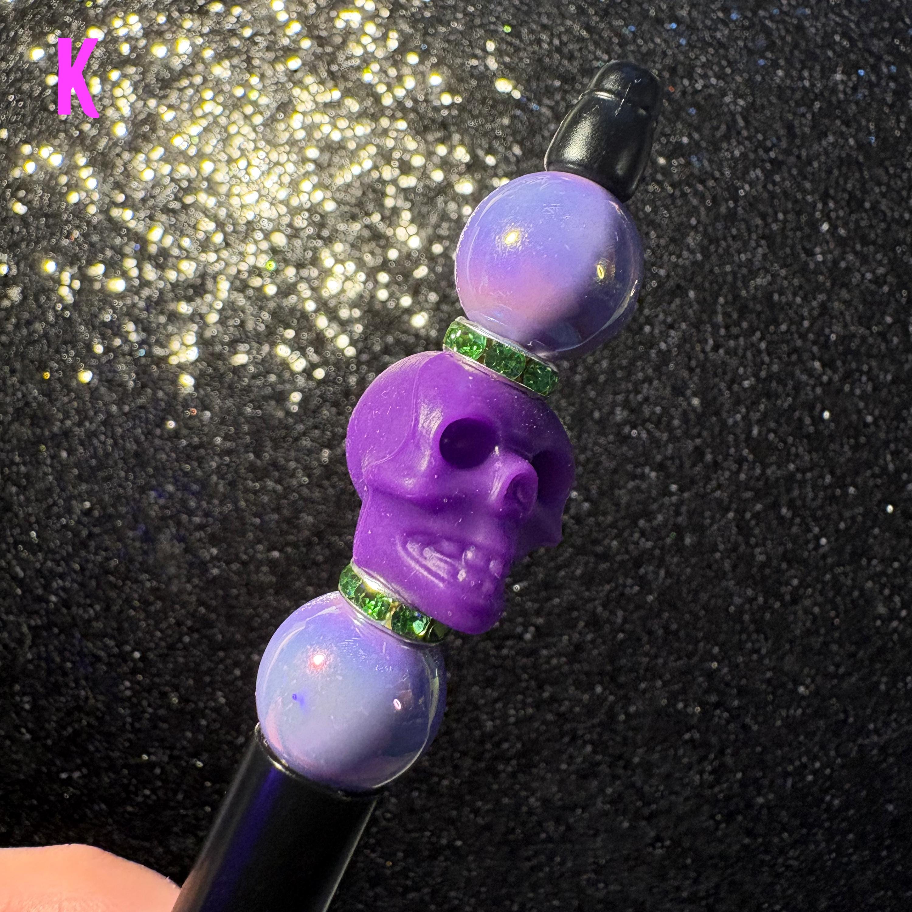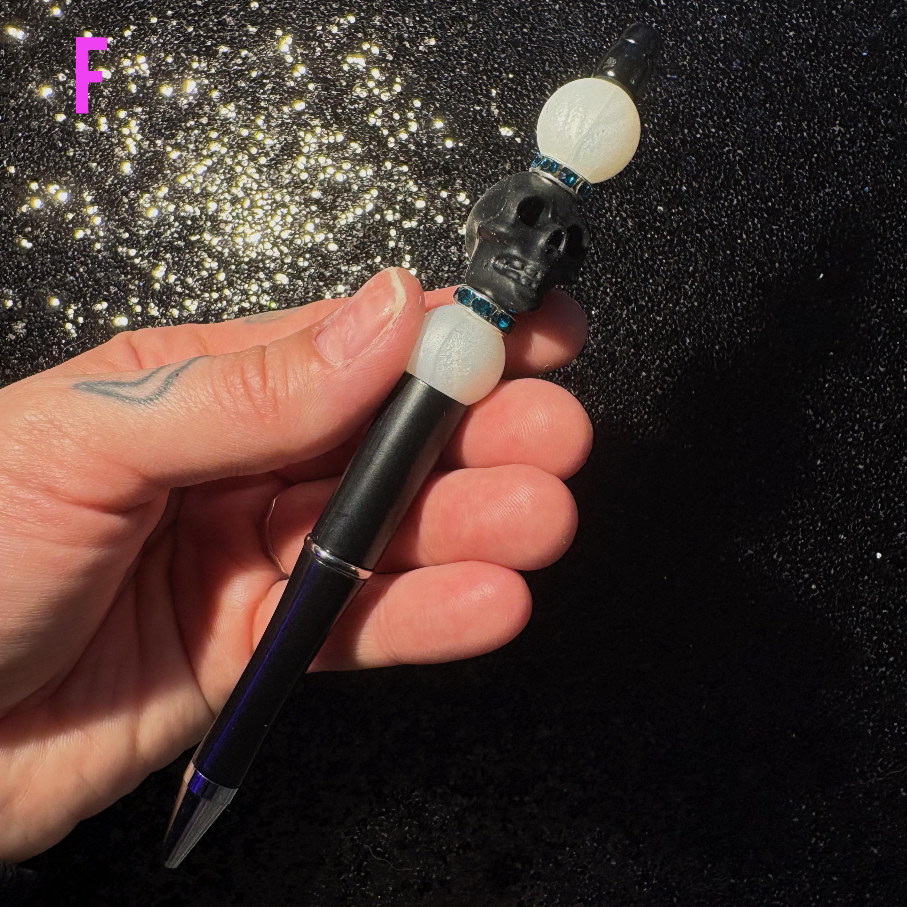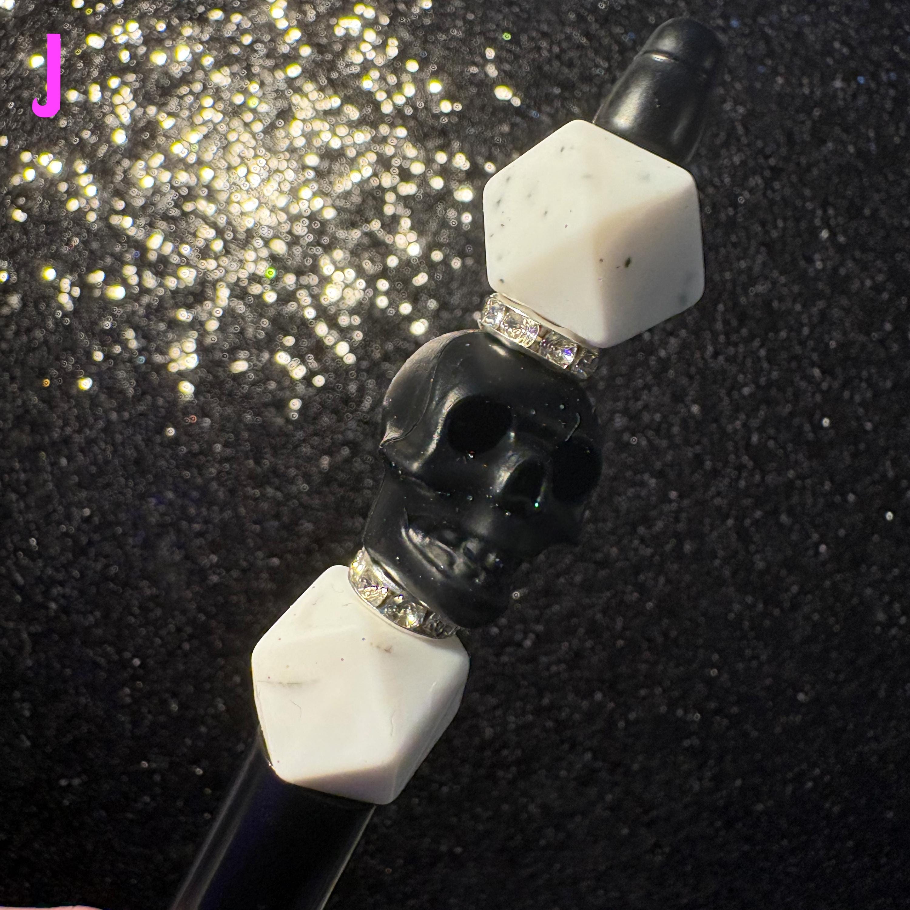 These Skullicious Beaded Pens feature a mix of silicone and pearlescent beads, paired with bold skull accents for a perfect blend of gothic, cute, and alt aesthetics. Each pen is hand-assembled and completely unique—no two are exactly the same.