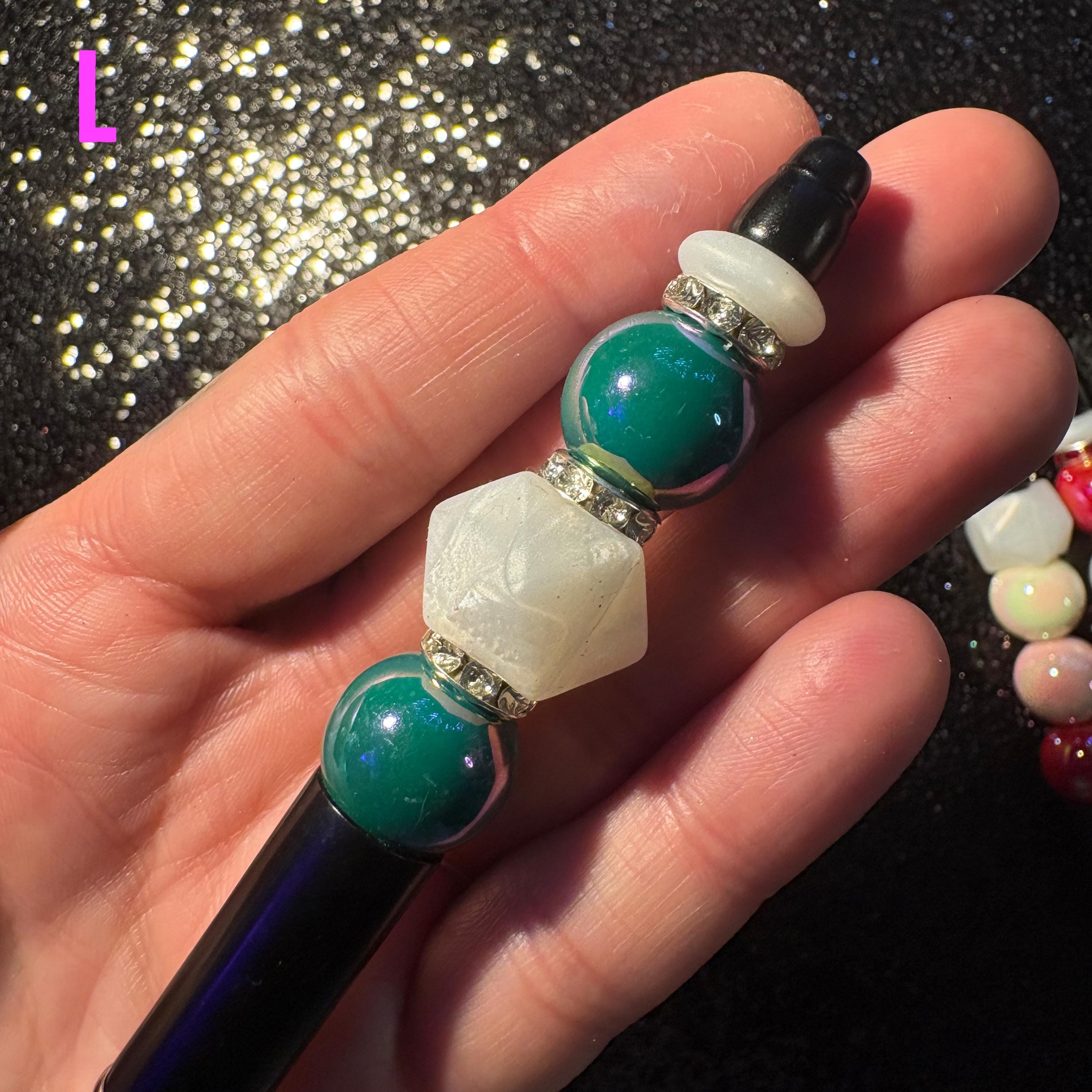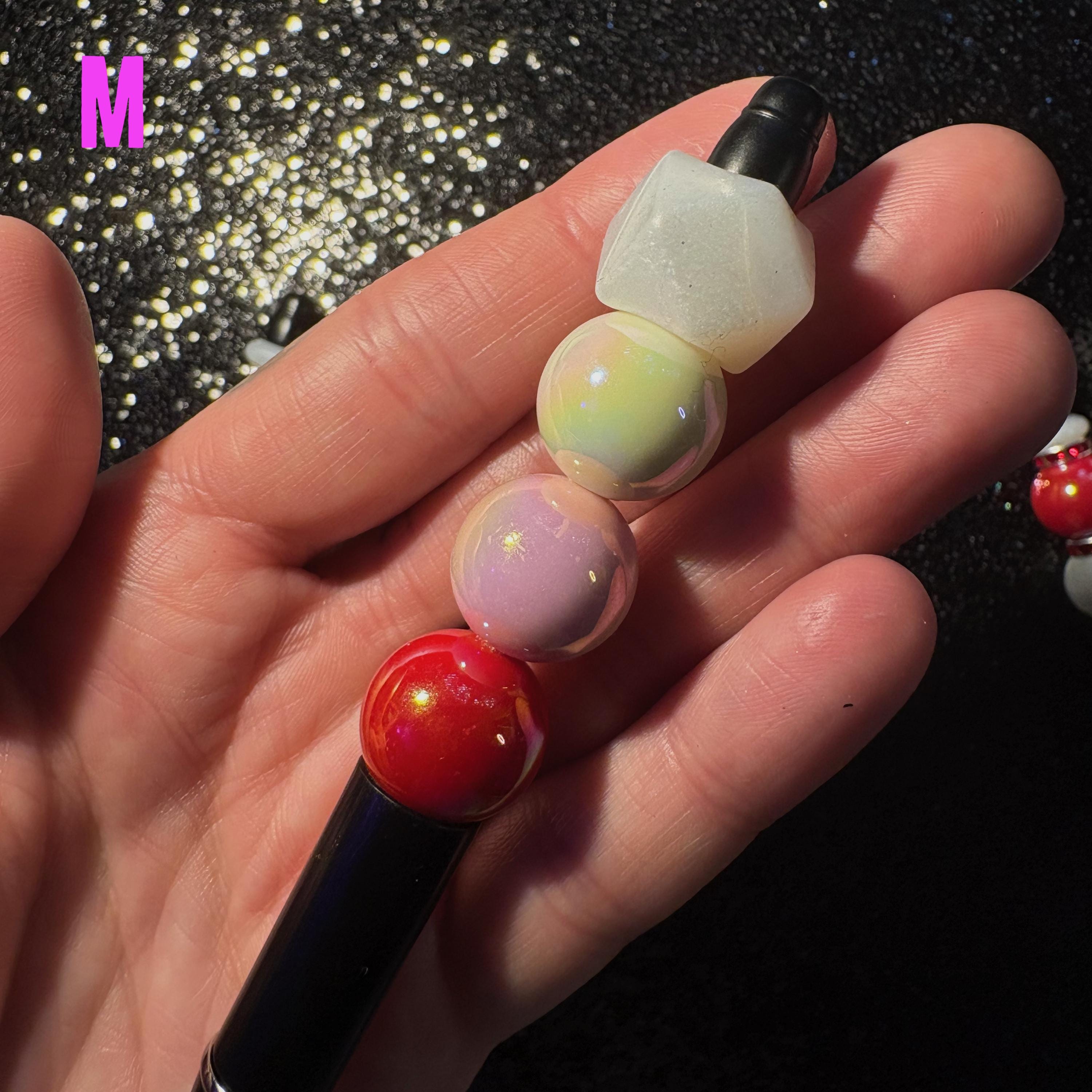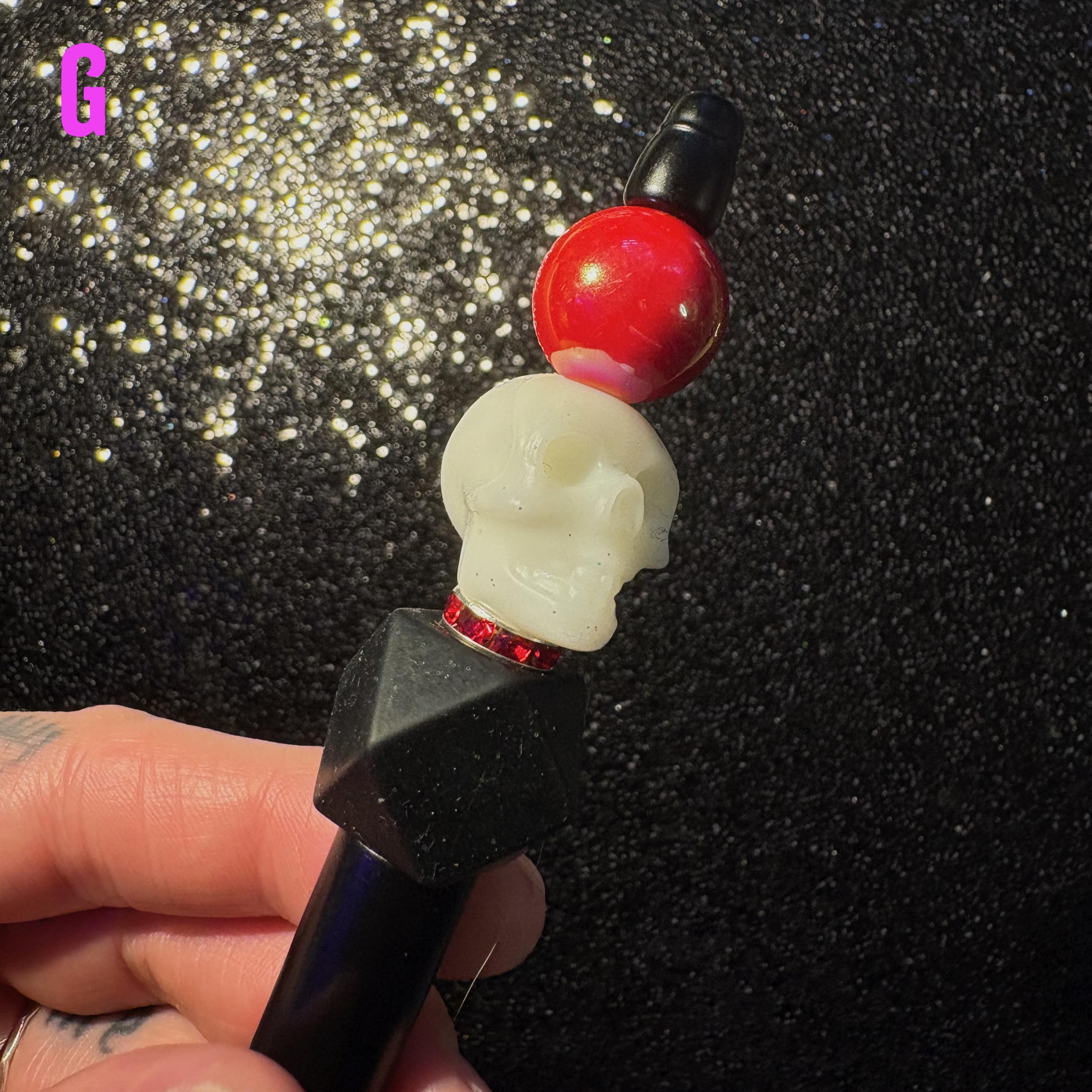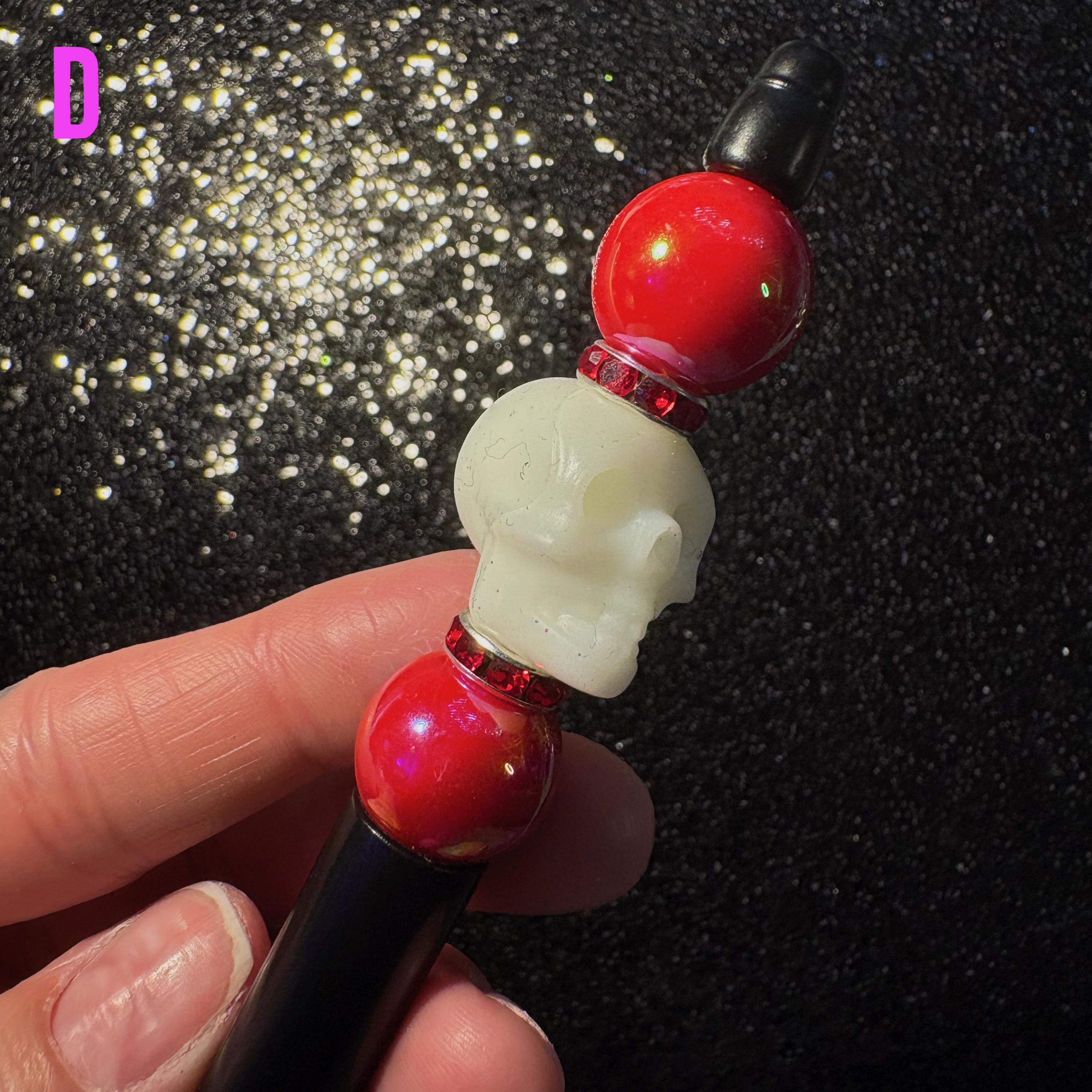 These Skullicious Beaded Pens feature a mix of silicone and pearlescent beads, paired with bold skull accents for a perfect blend of gothic, cute, and alt aesthetics. Each pen is hand-assembled and completely unique—no two are exactly the same.