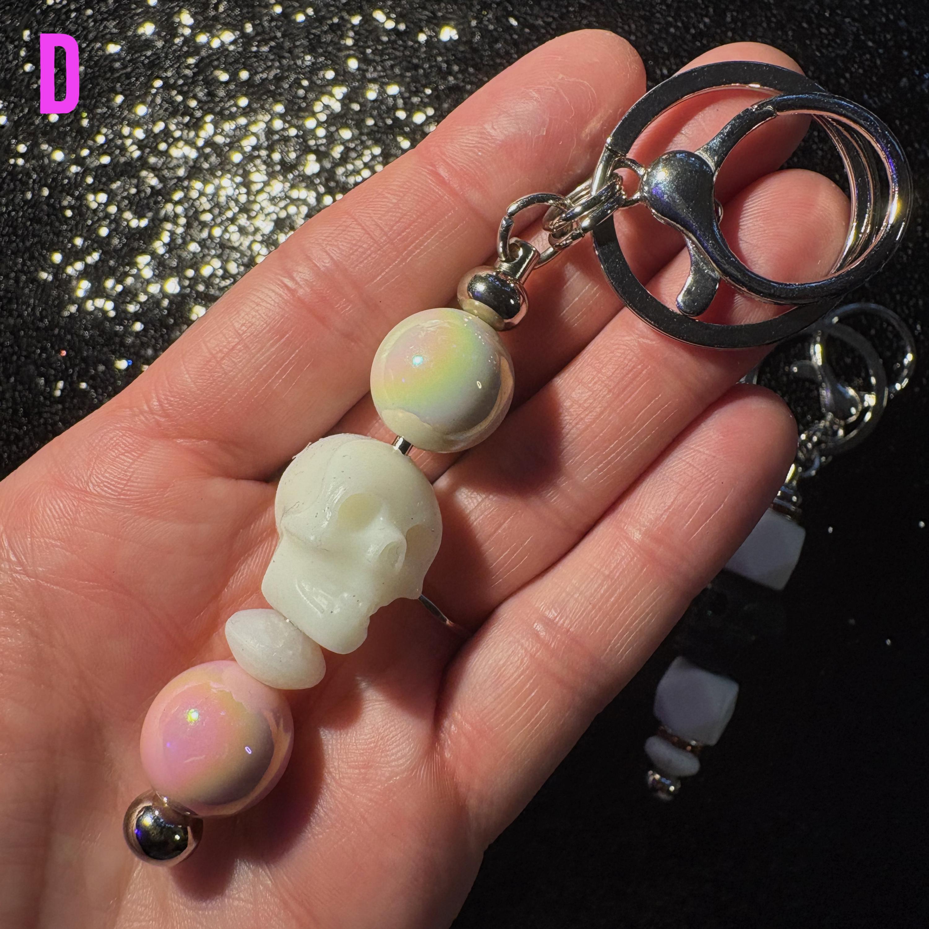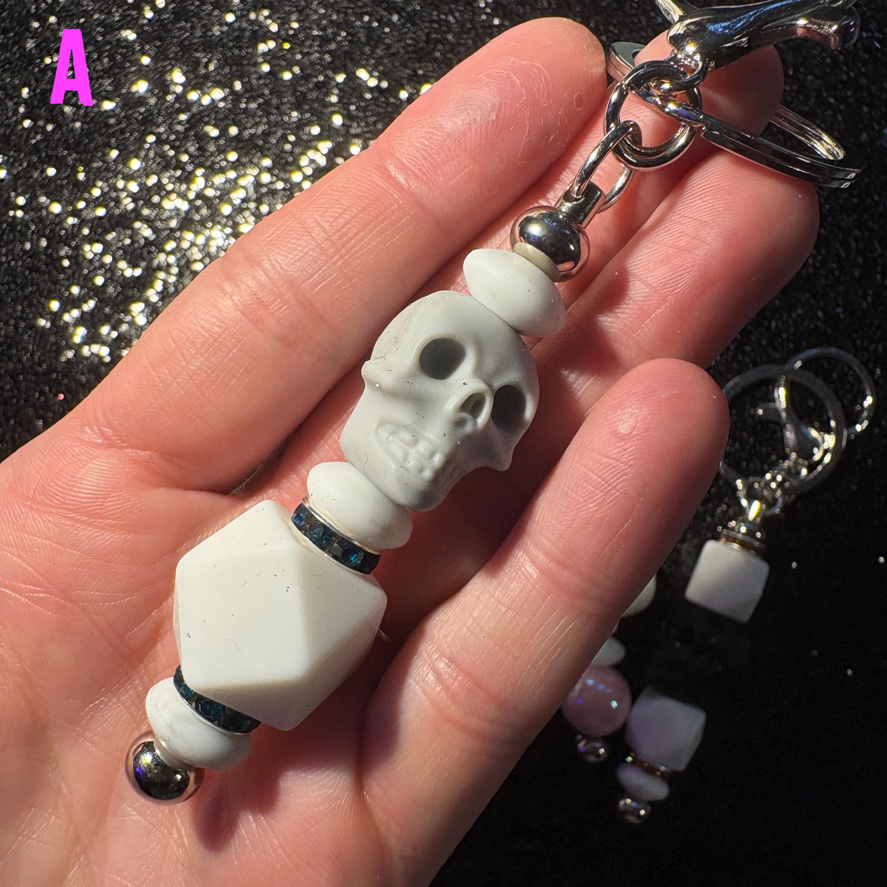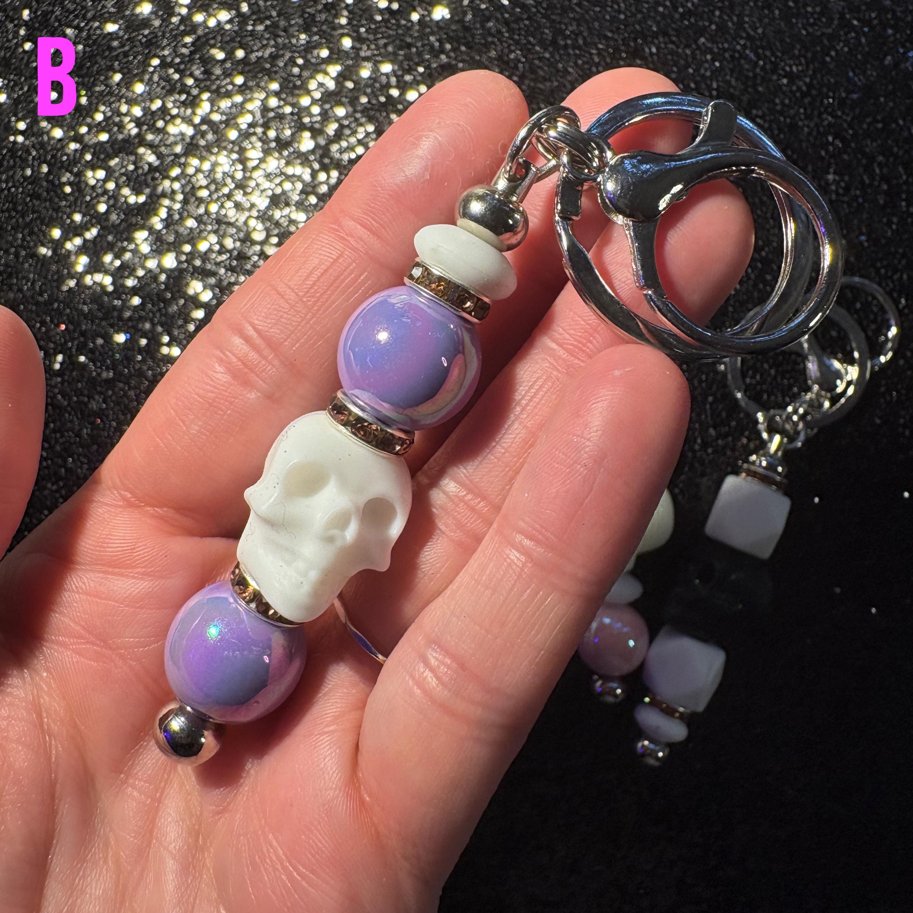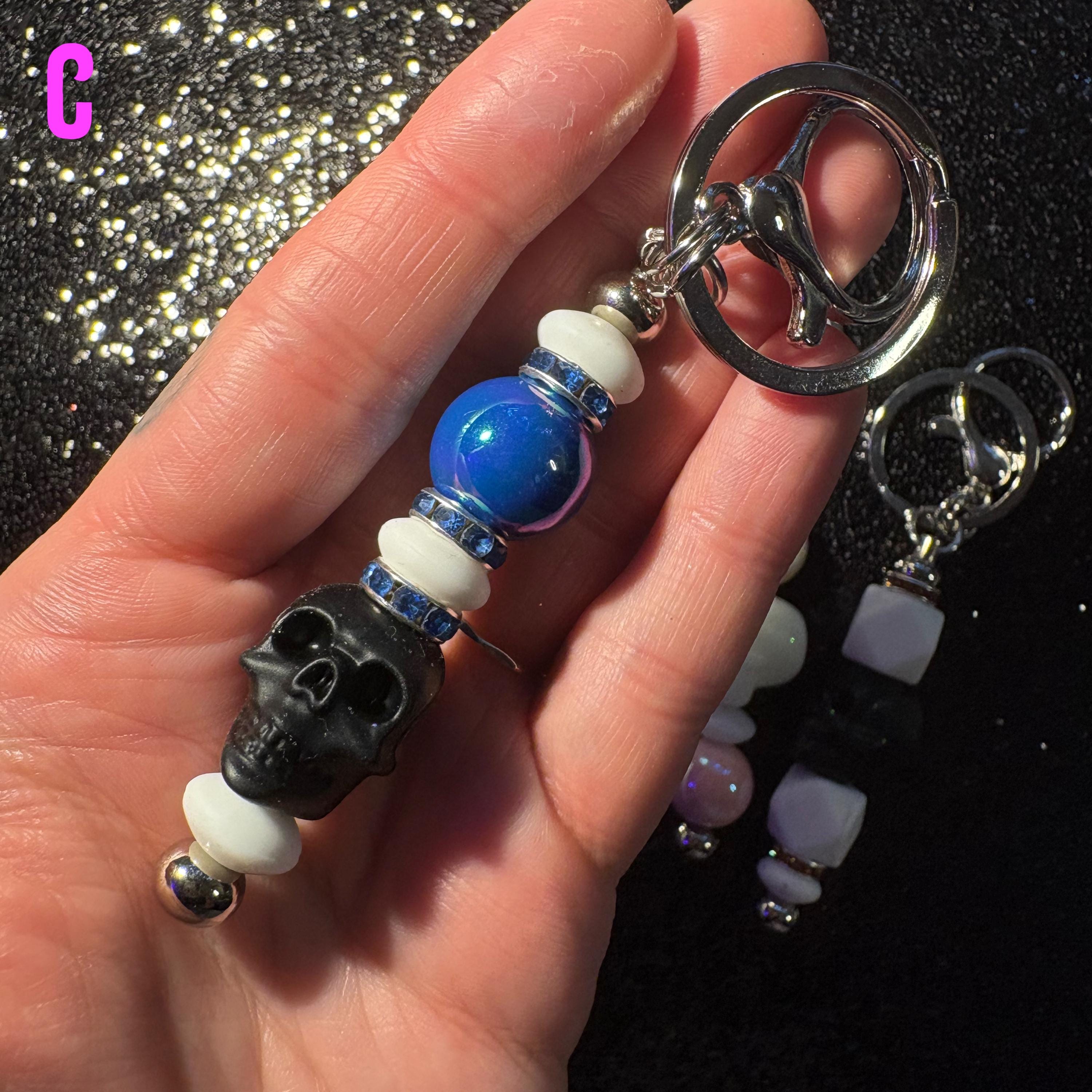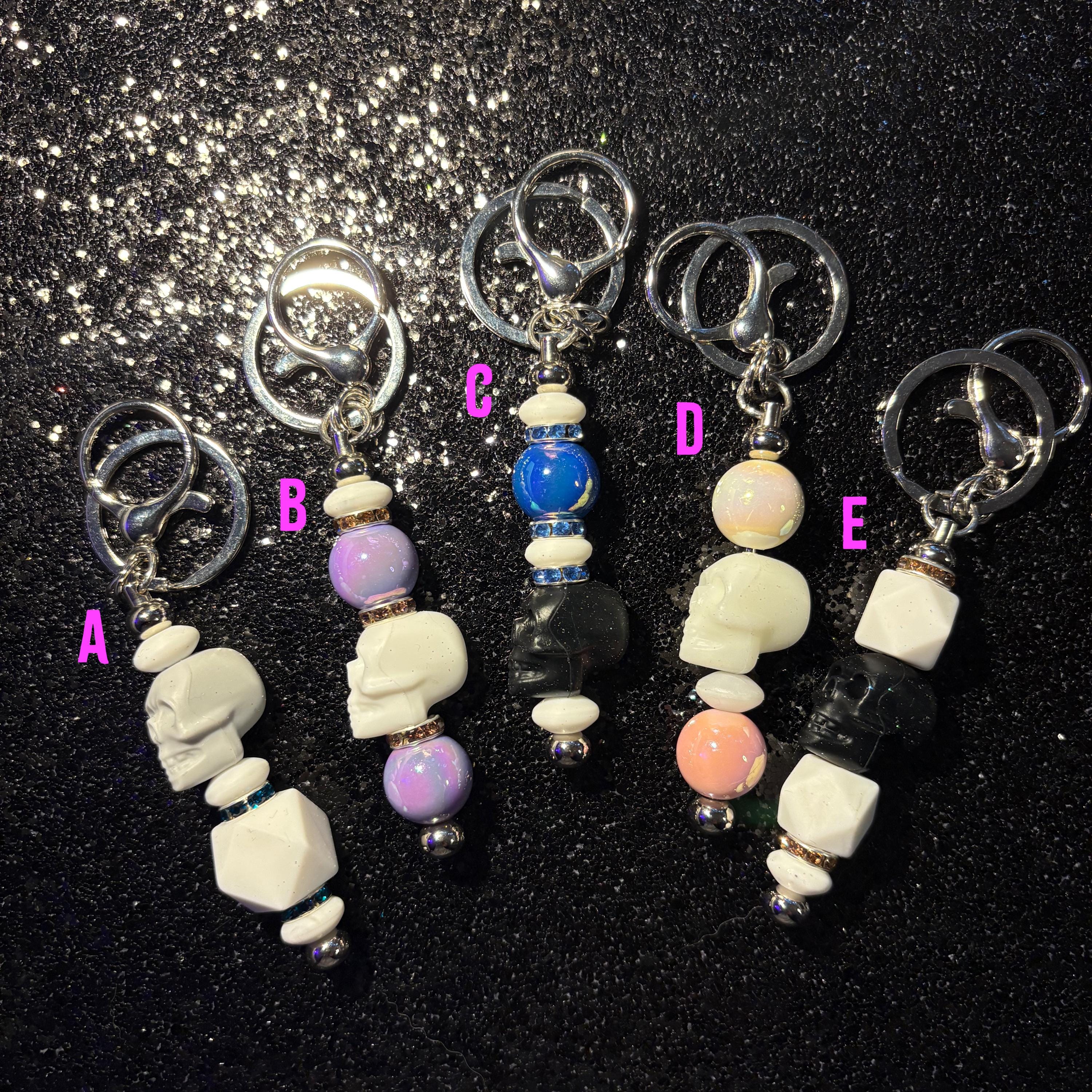 These Skullicious Beaded Keychains are the perfect mix of gothic, cute, and alt aesthetics—featuring skull beads, colorful accents, and a blend of silicone + pearlescent beads for texture and shine. Clip one onto your keys, bag, or backpack for an instant vibe upgrade.